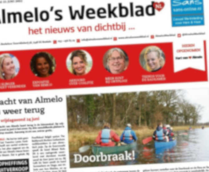 Het Almelo's Weekblad, met hierin opgenomen Hart van Almelo, vervult een belangrijke maatschappelijke functie, niet in de laatste plaats dankzij de eigen redactie die bovenop het lokale nieuws zit. Almelo's Weekblad is niet alleen sterk in actualiteit, maar ook in achtergrondverhalen, cultuurberichten en zakelijk nieuws. Het sterke inhoudelijke karakter van de krant zorgt ervoor dat deze trouw gelezen wordt. Wilt u adverteren in Almelo's Weekblad dan kunt u profiteren van de aantrekkelijke kortingen van de Advertentiegroothandel. Het plaatsen van een advertentie in Almelo's Weekblad was nog nooit zo goedkoop en gemakkelijk!