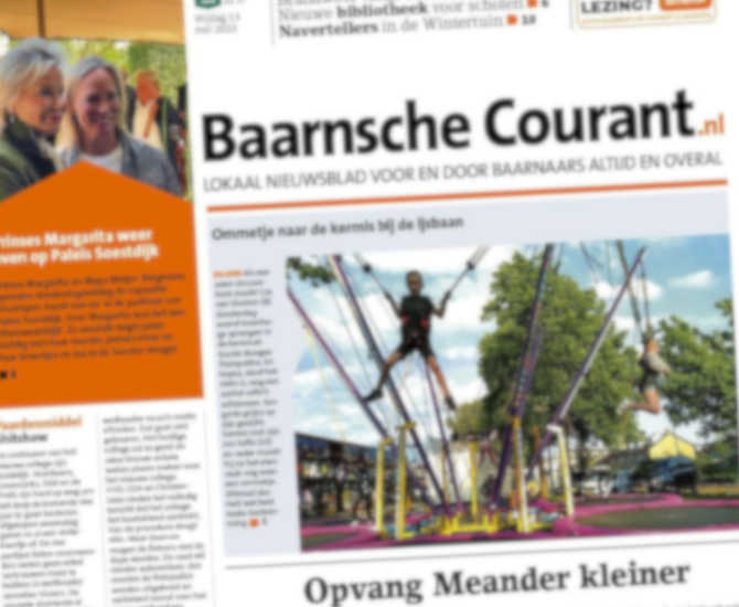 De Baarnsche Courant is een betaald nieuwsblad dat drie keer per week verschijnt in de gemeente Baarn. Wilt u adverteren in de abonnee-editie dan kunt u profiteren van de aantrekkelijke kortingen van de Advertentiegroothandel. Het plaatsen van een advertentie in de Baarnsche Courant was nog nooit zo goedkoop en gemakkelijk!