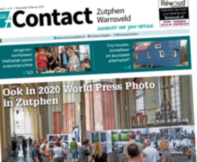 Contact is een onafhankelijk nieuwsblad dat wekelijks verschijnt in de edities Bronckhorst Noord, Bronckhorst Midden, Bronckhorst Zuid en Zutphen-Warnsveld. De editie Zutphen-Warnsveld wordt huis-aan-huis verspreid in Zutphen, Warnsveld, Leesten, Eefde, Epse, Gorssel, Joppe en Kring van Dorth. Wilt u adverteren in Contact editie Zutphen-Warnsveld dan kunt u profiteren van de aantrekkelijke kortingen van de Advertentiegroothandel. Het plaatsen van een advertentie in Contact was nog nooit zo goedkoop en gemakkelijk!