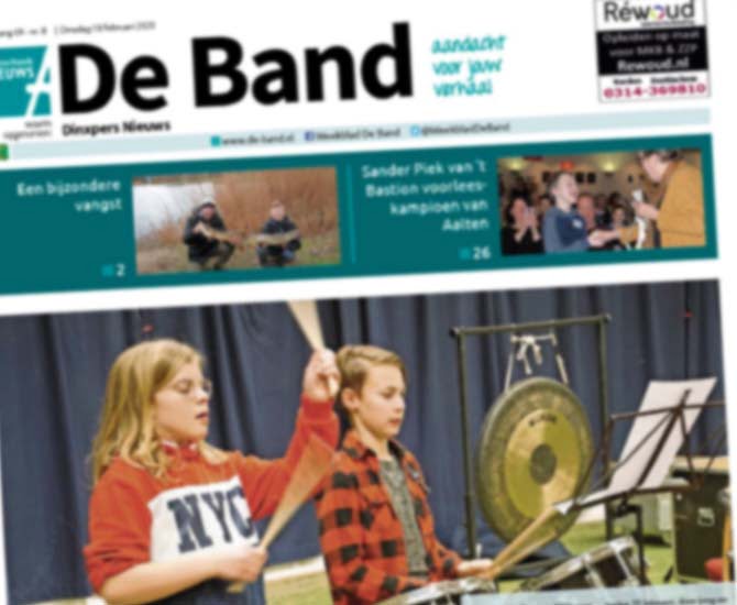 De Band wordt verspreid in Dinxperlo, De Heurne, IJzerlo,Suderwick, Sinderen, Voorst, Breedenbroek en Lintelo. Wilt u adverteren in De Band dan kunt u profiteren van de aantrekkelijke kortingen van de Advertentiegroothandel. Het plaatsen van een advertentie in De Band was nog nooit zo goedkoop en gemakkelijk!