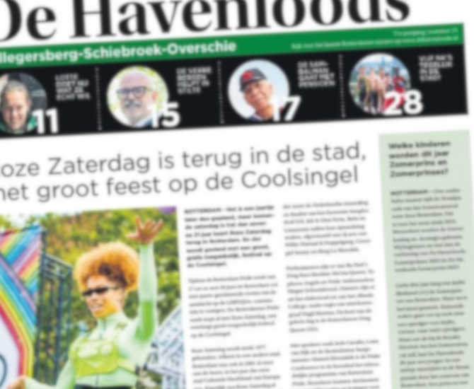 De Havenloods is een huis-aan-huiskrant die gratis wordt verspreid in de edities Prins Alexander, Delfshaven, Hillegersberg-Schiebroek-Overschie, Noord-Stadscentrum, Kralingen-Crooswijk, Charlois-Feijenoord, IJsselmonde en Hoogvliet in de gemeente Rotterdam. Elke week wordt er een afgewogen mix gemaakt tussen nieuws, cultuur, human interest, en achtergronden. Plus de vaste rubrieken sport, agenda, en natuurlijk een puzzel, de rubriek Rotterdammer van de Week, onze vaste columnisten Peter Steenbergen (Thuis Op Straat) en Tineke Speksnijder (eigenaar café de Schouw), op de misdaadpagina zijn er columns van strafrechtdeskundige Joost Verbaan en de ZSM officeren van justitie Hélène du Croix en Maurice van Heemst. Wilt u adverteren in de editie Hillegersberg-Schiebroek-Overschie dan kunt u profiteren van de aantrekkelijke kortingen van de Advertentiegroothandel. Het plaatsen van een advertentie in De Havenloods was nog nooit zo goedkoop en gemakkelijk!