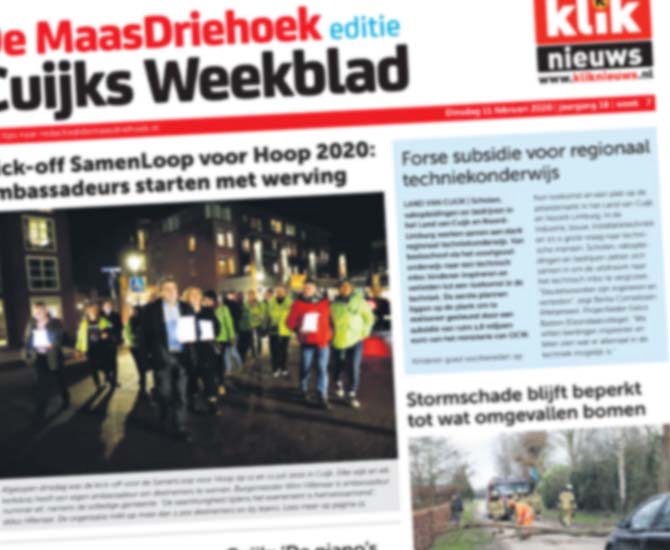 De Maas Driehoek - dat zijn naam dankt aan de drie hoofdkernen aan de Maas - verschijnt sinds mei 2003 in een groot deel van het Land van Cuijk en de kop van Limburg. Hoewel het weekblad nog pril is in levensjaren, is de nieuwsbrenger in de regio’s Boxmeer, Cuijk en Gennep inmiddels alom gewaardeerd en voor velen onmisbaar. De Maas Driehoek biedt een breed en gevarieerd nieuwsaanbod, met een stevig accent op gebeurtenissen in het eigen verspreidingsgebied. Of dat nu is op het terrein van politiek, bedrijvigheid, kunst en cultuur, uitgaan of sport. Wilt u adverteren in De Maas Driehoek dan kunt u profiteren van de aantrekkelijke kortingen van de Advertentiegroothandel. Het plaatsen van een advertentie De Maas Driehoek was nog nooit zo goedkoop en gemakkelijk!