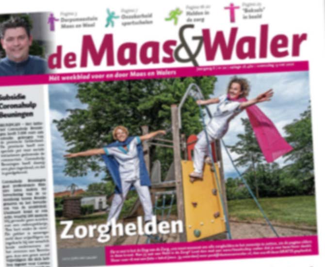 De Maas & Waler is een onafhankelijk nieuwsblad van De Maas & Waler bv. Het wordt wekelijks huis-aan-huis verspreid in de gemeenten Beuningen, Druten, West Maas & Waal en een deel van de gemeente Wijchen en Maasdriel. Dat zijn de plaatsen Afferden, Alphen, Altforst, Appeltern, Batenburg, Beneden-Leeuwen, Bergharen, Beuningen, Boven-Leeuwen, Deest, Dreumel, Druten, Ewijk, Heerewaarden, Hernen, Horssen, Maasbommel, Puiflijk, Wamel, Weurt en Winssen. Wilt u adverteren in De Maas & Waler dan kunt u profiteren van de aantrekkelijke kortingen van de Advertentiegroothandel. Het plaatsen van een advertentie in De Maas & Waler was nog nooit zo goedkoop en gemakkelijk!