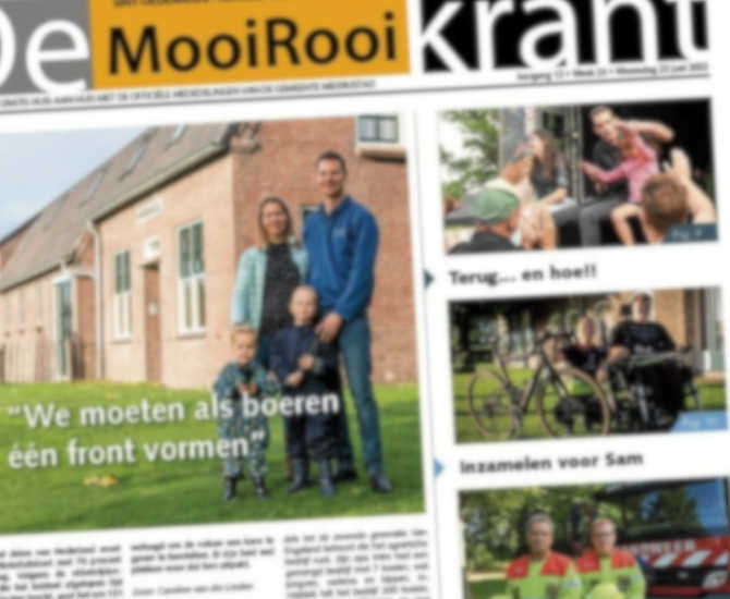 De MooiKrant is een uniek mediaconcept van nieuwsvergaring op lokaal niveau. Het biedt een uithangbord voor de gehele gemeenschap: op papier, maar zeker ook online. Gratis weekbladen worden nog steeds het best gelezen in heel Nederland. Wilt u adverteren in De MooiRooiKrant dan kunt u profiteren van de aantrekkelijke kortingen van de Advertentiegroothandel. Het plaatsen van een advertentie in De MooiRooiKrant was nog nooit zo goedkoop en gemakkelijk!