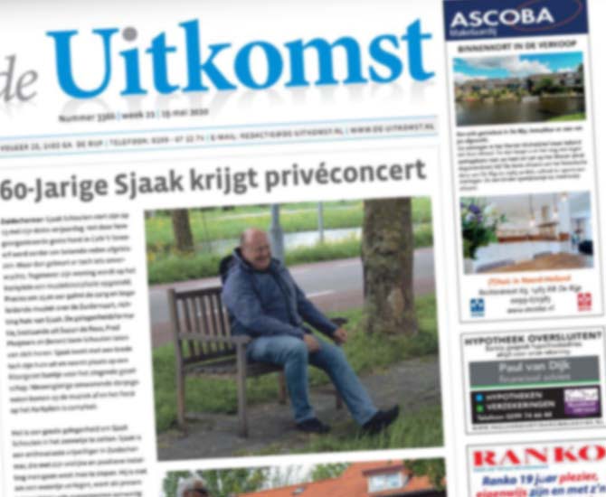 De Uitkomst is een regionale huis-aan-huiskrant voor de gemeenten Graft-De Rijp, Schermer, Beemster en Zeevang. Door de sterke betrokkenheid en bekendheid staat de krant midden tussen de inwoners, de ondernemers en het verenigingsleven. Wekelijks bericht De Uitkomst over alles wat leeft binnen de gemeenschap in deze regio. De inhoud is gericht op de positieve kant van de samenleving. Het lokale nieuws wordt verzorgd door de lezers en adverteerders in samenwerking met enthousiaste fotografen. Het nieuws wordt aangevuld met wekelijkse en maandelijkse columns en rubrieken. Daarnaast vindt u in De Uitkomst de gemeentepublicaties voor Graft-De Rijp, Schermer en Zeevang, de Uitpagina, Poldermodel, Dorpsgezichten en nog veel meer. Wilt u adverteren in De Uitkomst dan kunt u profiteren van de aantrekkelijke kortingen van de Advertentiegroothandel. Het plaatsen van een advertentie in De Uitkomst was nog nooit zo goedkoop en gemakkelijk!