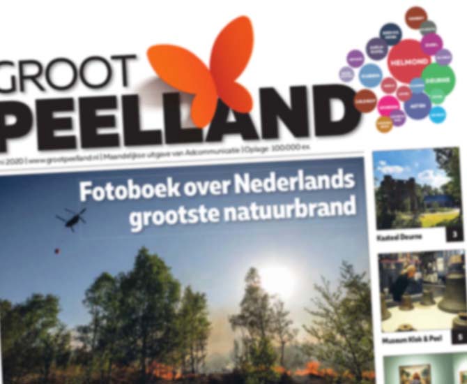 Huis-aan-huiskrant Groot Peelland, is sinds enkele jaren een maandelijkse uitgave in het grote gebied Helmond e.o.-De Peel. De maandkrant geeft extra nieuws en informatie over het wel en wee van haar bewoners die hier, in dit grote verzorgingsgebied, wonen, leven en werken. Groot Peelland wordt maandelijks verspreid in Helmond, Deurne, Gerwen, Nederwetten, Vlierden, Asten, Liessel, Someren, Geldrop-Mierlo, Gemert, Bakel, Milheeze, De Mortel, Aarle-Rixtel, Lieshout en Beek en Donk. Wilt u adverteren in Groot Peelland dan kunt u profiteren van de aantrekkelijke kortingen van de Advertentiegroothandel. Het plaatsen van een advertentie in Groot Peelland was nog nooit zo goedkoop en gemakkelijk!