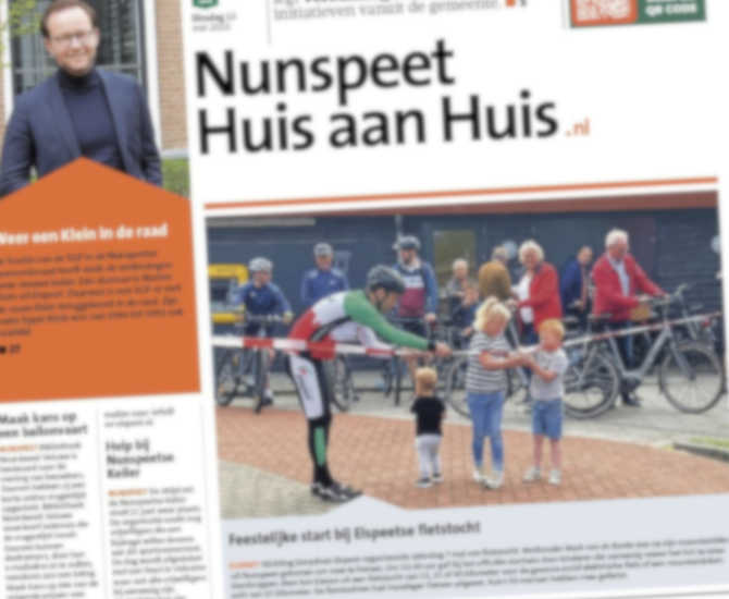 Nunspeet Huis aan Huis staat middenin de samenleving en brengt nieuws voor jong en oud voor alle geledingen uit de lokale samenleving. Het is een echte dorpskrant met elke week weer de nieuwste ontwikkelingen, onderwerpen en verhalen uit de kernen. Elke week wordt een afgewogen keuze gemaakt tussen nieuws, sport, cultuur, human interest, columns, politiek en de uitgaansagenda. Hiervoor hanteert de redactie vier pijlers: nieuws, inspiratie, kennis en vermaak. Het nieuws is altijd dichtbij, gaat altijd over mensen helpt in het dagelijks leven en ontroert en beweegt. Het sterke lokale karakter van Nunspeet Huis aan Huis zorgt voor de perfecte etalage voor lokale ondernemers. Familieberichten in Nunspeet Huis aan Huis worden ook geplaatst in Huis aan Huis Elburg-Oldebroek. Wilt u adverteren in Nunspeet Huis aan Huis dan kunt u profiteren van de aantrekkelijke kortingen van de Advertentiegroothandel. Het plaatsen van een advertentie in Nunspeet Huis aan Huis was nog nooit zo goedkoop en gemakkelijk!