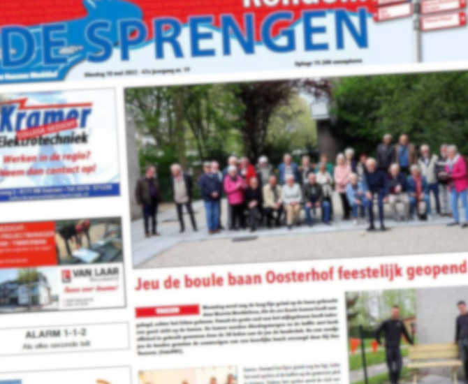 Rondom De Sprengen (voorheen Vaassens Weekblad) verschijnt wekelijks huis-aan-huis in Vaassen, Emst, Terwolde, Oene, Nijbroek, Welsum, De Vecht, Zuuk, Beemte-Broekland, Wenum Wiesel, Apeldoorn, Noord en de bebouwde kom van Epe. Wilt u adverteren in Rondom De Sprengen dan kunt u profiteren van de aantrekkelijke kortingen van de Advertentiegroothandel. Het plaatsen van een advertentie in het Rondom De Sprengen was nog nooit zo goedkoop en gemakkelijk!