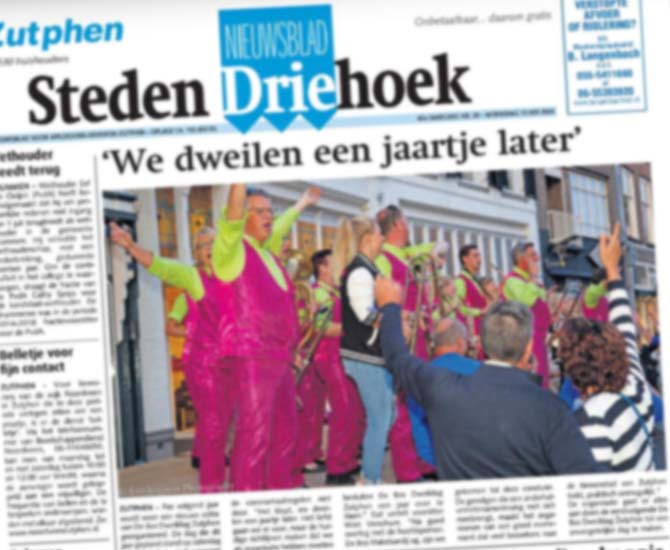 Nieuwsblad Stedendriehoek is een huis-aan-huisblad dat wordt verspreid in de regio Stedendriehoek: Apeldoorn, Deventer en Zutphen en omliggende plaatsen. Door de bevolkingsgroei en nieuwbouw in de regio, is het nieuwsblad inmiddels uitgegroeid tot één van de toonaangevende huis-aan-huisbladen in ons land. Wilt u adverteren in de editie Zutphen (inclusief Brummen) dan kunt u profiteren van de aantrekkelijke kortingen van de Advertentiegroothandel. Het plaatsen van een advertentie in Nieuwsblad Stedendriehoek was nog nooit zo goedkoop en gemakkelijk!