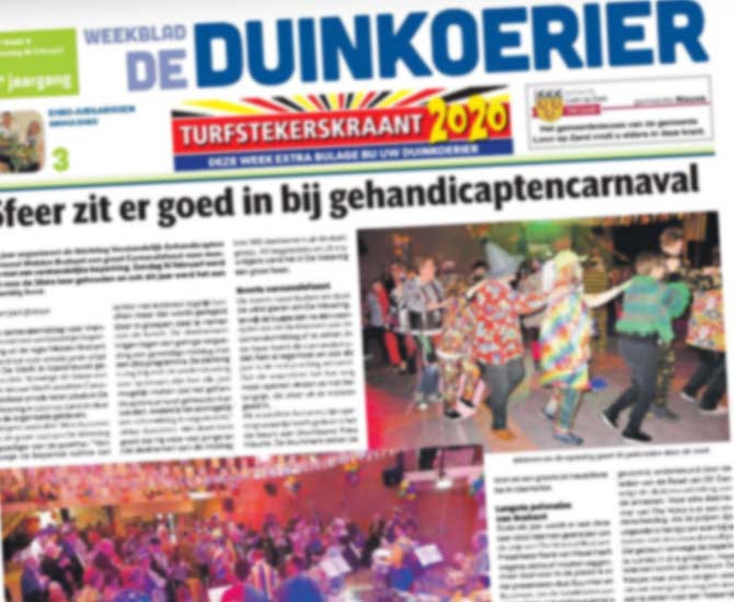 De Duinkoerier wordt sinds 2008 door Uitgeverij Em. de Jong uitgegeven. De huis-aan-huiskant wordt verspreid in Loon op Zand, Kaatsheuvel, De Moer en Udenhout. Wilt u adverteren in De Duinkoerier dan kunt u profiteren van de aantrekkelijke kortingen van de Advertentiegroothandel. Het plaatsen van een advertentie De Duinkoerier was nog nooit zo goedkoop en gemakkelijk!