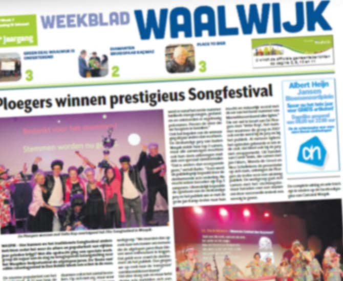 Weekblad Waalwijk wordt sinds januari 2013 uitgegeven door Uitgeverij Em. de Jong. Vanaf 2014 is de oplage in twee deeledities opgesplitst: Weekblad Waalwijk en Weekblad Drunen. Adverteren is alleen in de combinatie mogelijk. Plaatselijke correspondenten schrijven wekelijks over het nieuws in de regio. Verder kunnen verenigingen en instellingen zelf berichten inleveren die meestal onverkort worden geplaatst. Een ijzersterke formule. Want de huis-aan-huisbladen van De Jong worden graag gelezen. Alle gemeenten in het verspreidingsgebied publiceren hun officiële bekendmakingen in de weekbladen van De Jong. Dat bevestigt de hoge attentiewaarde en leesdichtheid. Wilt u adverteren in Weekblad Waalwijk dan kunt u profiteren van de aantrekkelijke kortingen van de Advertentiegroothandel. Het plaatsen van een advertentie Weekblad Waalwijk was nog nooit zo goedkoop en gemakkelijk!