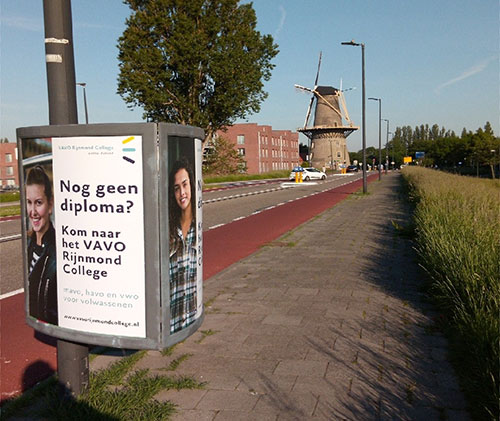 Reclame op enkelzijdige displays op A0-formaat langs hoofdwegen, fietsroutes en in stadscentra.